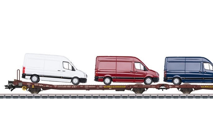 Die Doppel-Flachwagen der Gattung Laads wurden von der Firma Transwaggon in den späten 1970 als Typ TWA 800 A entwickelt. In den späten 1980er Jahren folgte der Typ TWA 800B. Diese TWA 800 B findet nun den Weg in das Märklin-Programm. Er ist sowohl beladen (VW Carfter Transporter) als auch unbeladen erhältlich. Das neu konstruierte Modell besteht vorrangig aus Zinkdruckguss und hat hervorragende Laufeigenschaften.