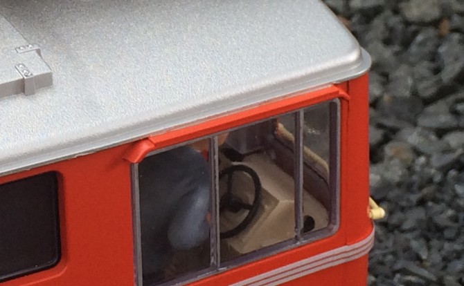 Bild unten: die neue Regenrinne über den Seitenfenstern schützt auch den Modell-Lokführer.